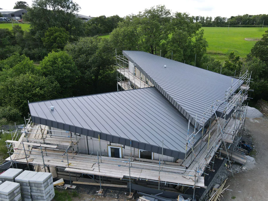 Zinc cladding and roofing system for a new-build modern home in the South West.